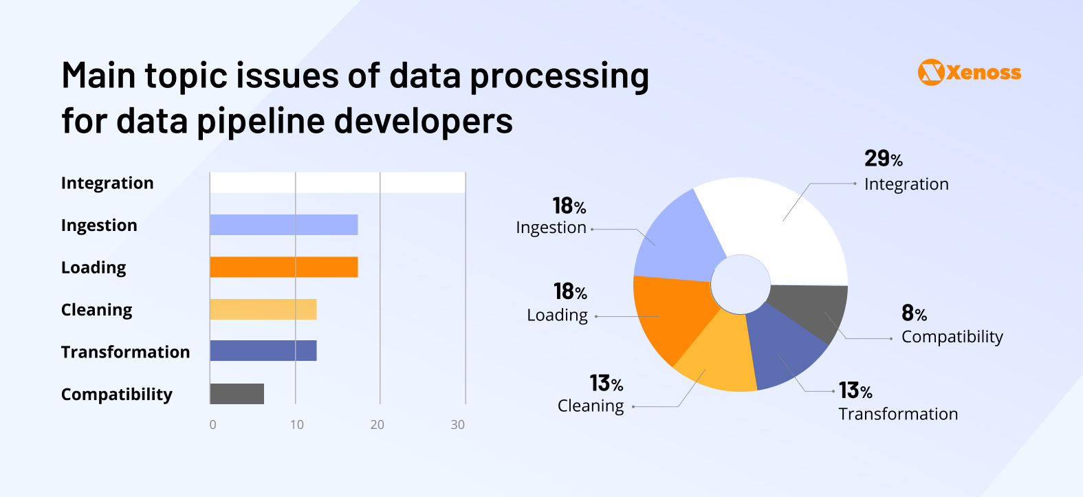 - Compatibility issues appeared in 8% of surveyed pipelines, across all stages of the ETL process. They were mostly linked to code performance bottlenecks on different operating systems and differences between programming languages.